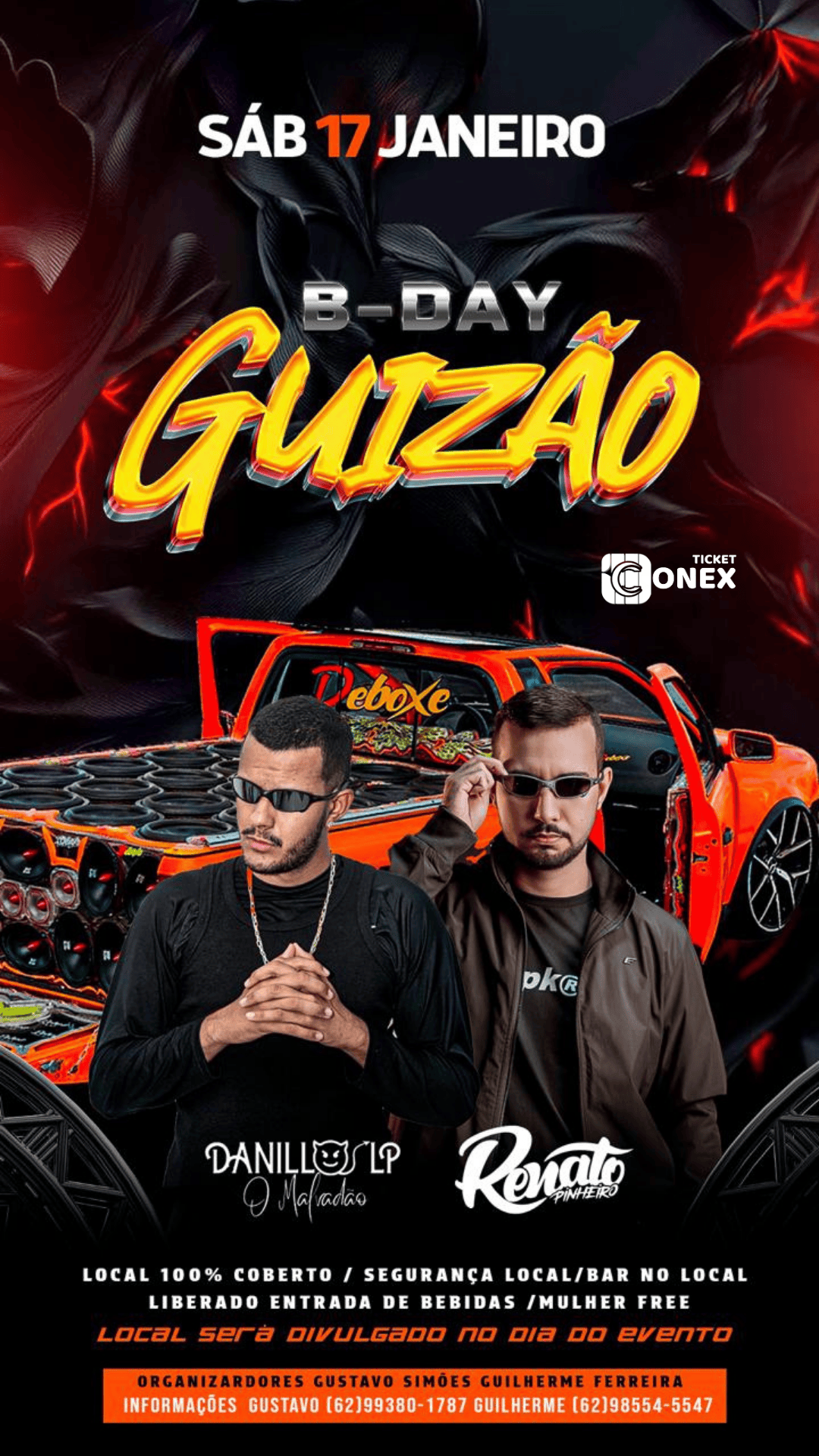 VENDAS EXCLUSIVAS somente no site ou aplicativo da Ticket Conex, pontos de vendas e comissários oficiais do evento. Não responsabilizamos por compras fora da nossa plataforma. Evite falsificações. Fique atento as atualizações do site.